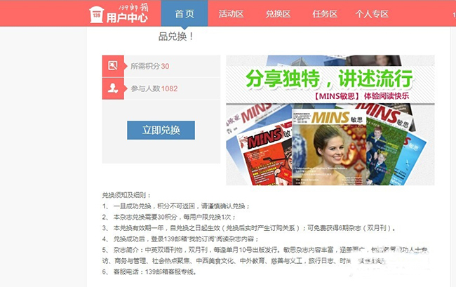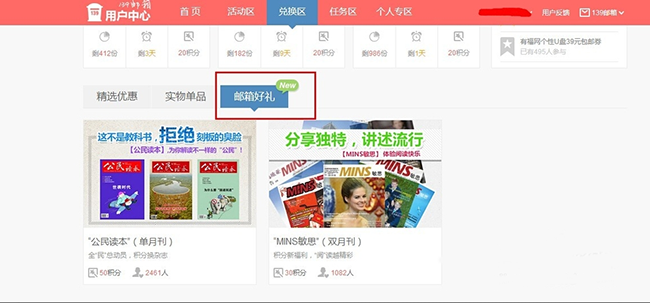 在图示邮箱好礼区,我们还可以用积分兑换各种电子杂志,通过兑换即可免费订阅精彩的电子刊物。